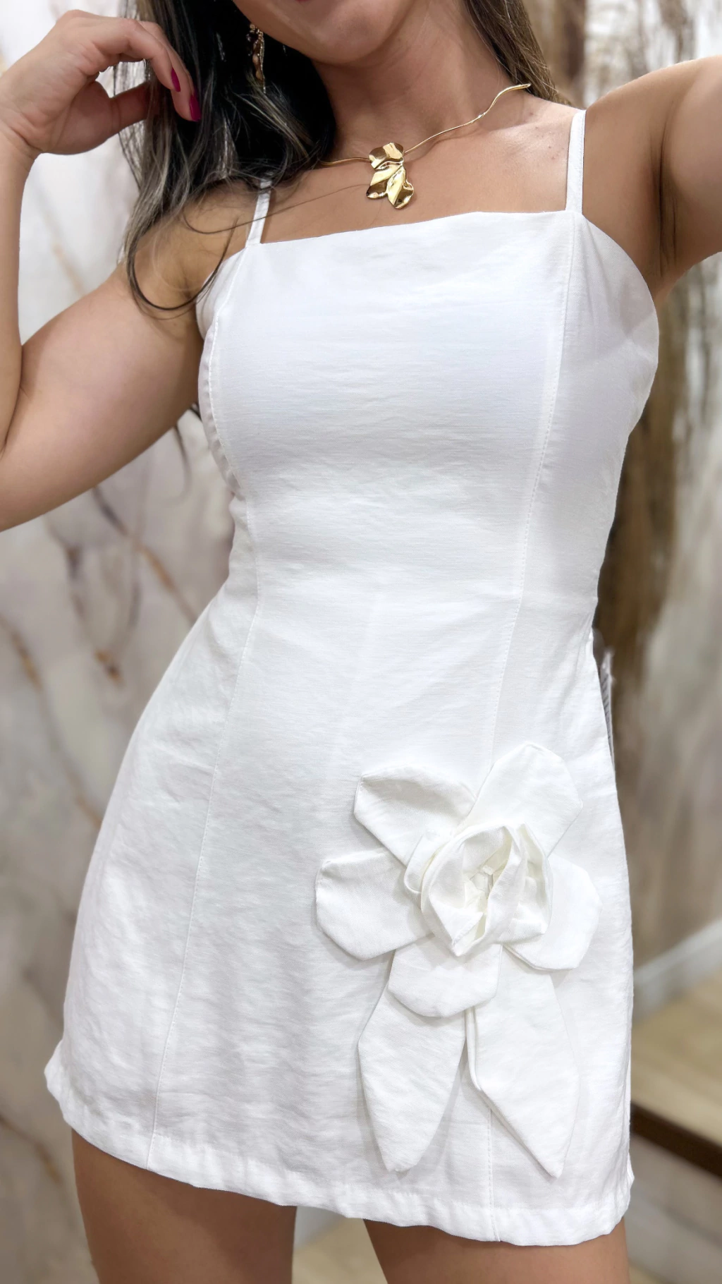 O vestido macaquinho Flôr une elegância e estilo, além de ser super confortável por ter o shortinho embaixo da saia. Possui bojo e amarração nas costas para melhor adequação aos seios.