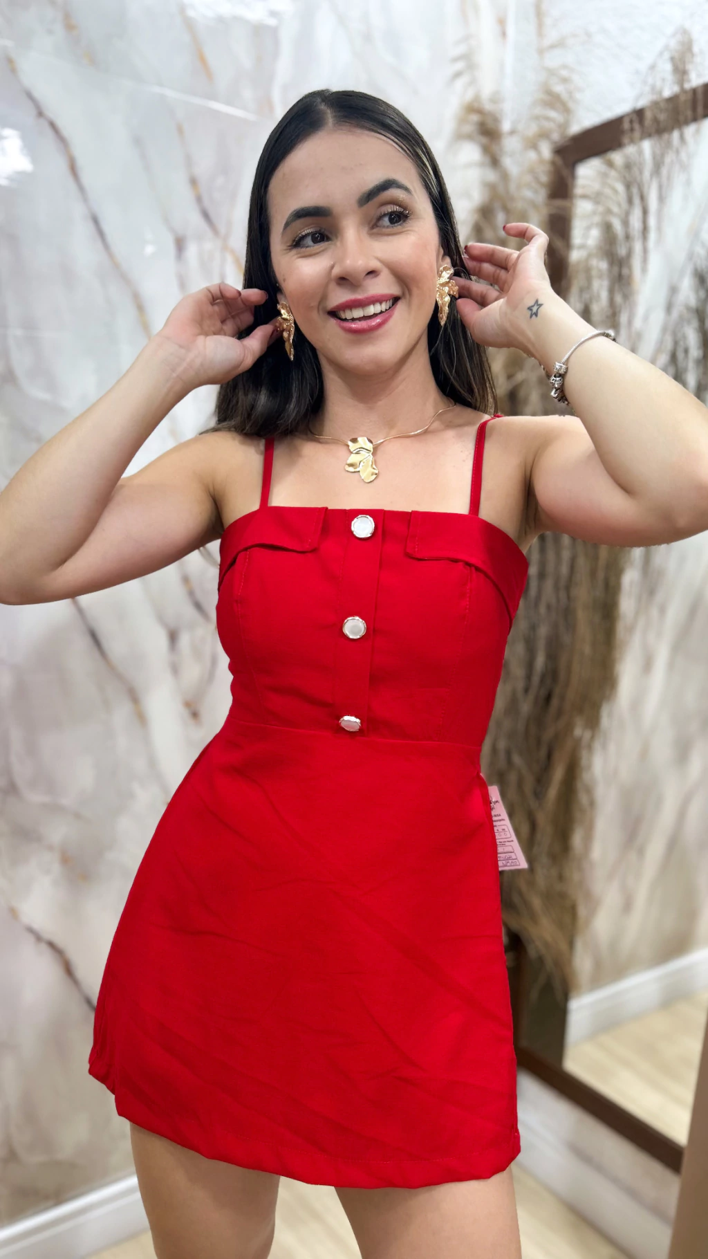 O vestido macaquinho Luna une elegância e estilo, além de ser super confortável por ter o shortinho embaixo da saia. Possui bojo e amarração nas costas para melhor adequação aos seios.